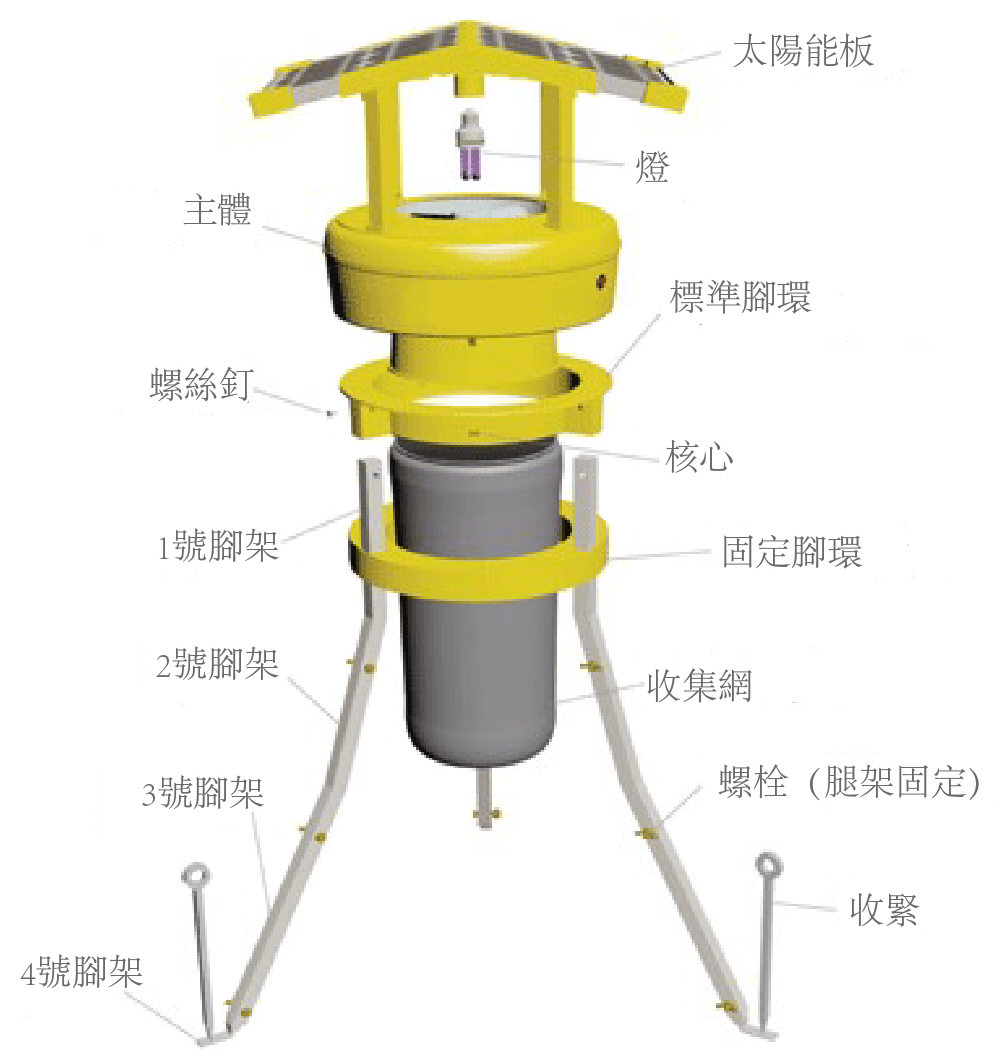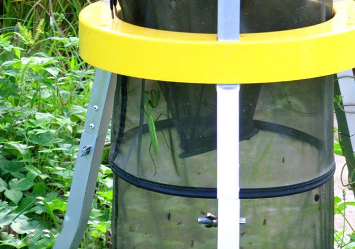 Mosquitoes, midges and flying insects are attracted by the ultraviolet black light bulb and exhausted into the collecting net by the inhaling fan.